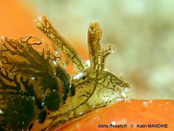 Les rhinophores sont bifides en enroulés sur la longueur.