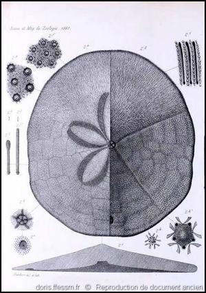Dessin (pl. 9) extrait de l'ouvrage de H. Michelin : "Notice sur quelques espèces d'Echinides provenant de la Nouvelle-Calédonie"