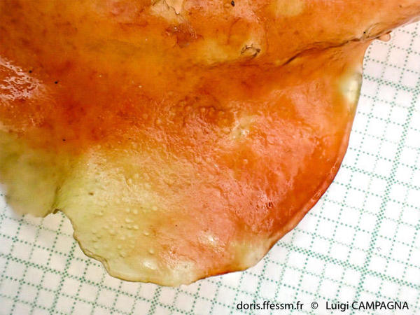 On voit les cystocarpes* répartis sur les 2 faces du thalle* et dépassant légèrement de la surface.