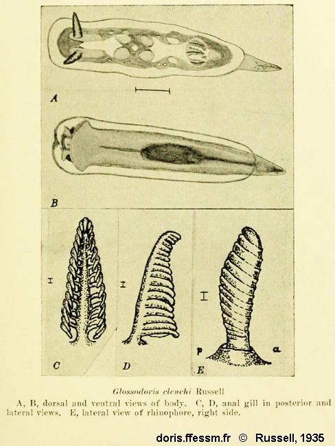 Planche extraite de Russell H.D., 1935, Some nudibranchs of Bermuda, with a description of a new species, Nautilus , 49(2), 59-61, pl. 4.