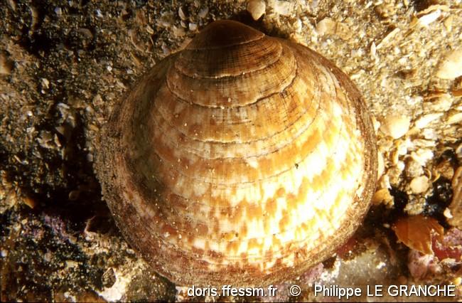 Glycymeris glycymeris sur un fond de cailloutis en région Provence-Alpes-Côte d'Azur en Méditerranée.