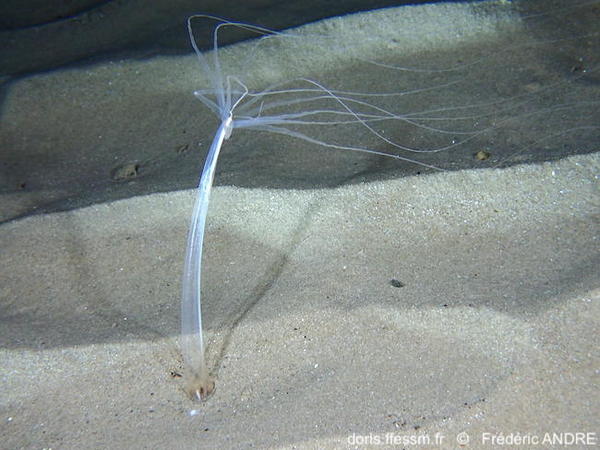 Anémone cylindrique (10 cm pour 1 cm de diamètre), fine, et transparente