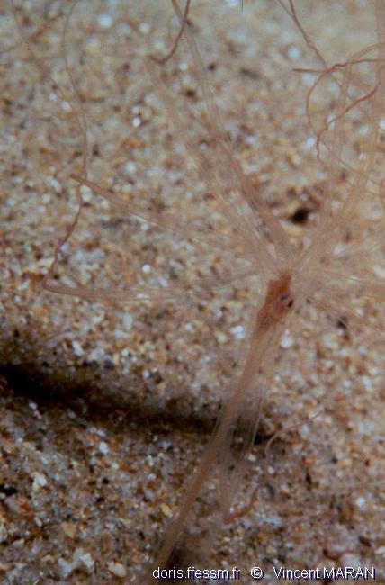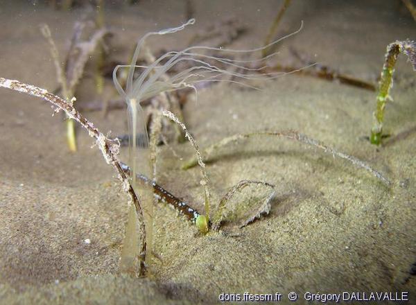 Il faut parfois avoir l'œil pour distinguer cette anémone totalement transparente, d'autant plus si sa colonne gastrique n'est pas colorée et si elle se déploie sur fond sableux.