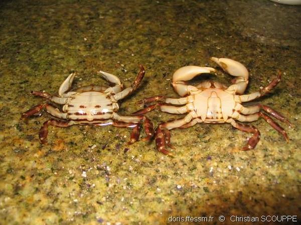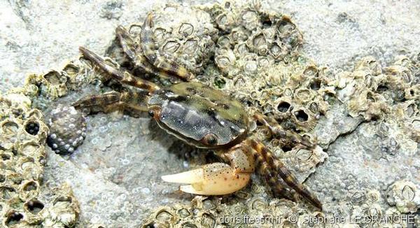 Hemigrapsus takanoi : touffe de poils sur le bord externe de la pince des mâles. Vit de préférence dans les milieux vaseux (zones portuaires).