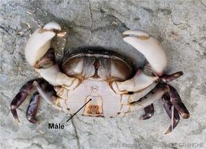 Chez le mâle on notera la présence d’une vésicule de chair, le pulvinus, à l'intersection du dactyle et du propode.