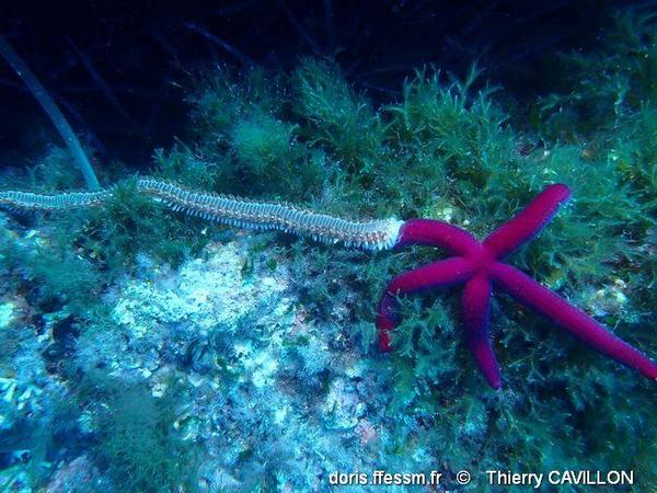 Le ver de feu s'éloigne avec sa proie : le bras qu'il a arraché à une étoile de mer.
