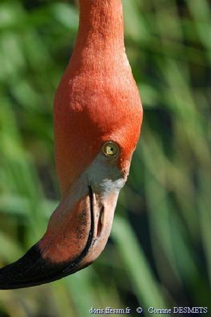 Cette photo présente la forme du bec épais et recourbé mais la couleur des plumes laisse penser qu'il s'agit plutôt du flamant des Caraïbes que du flamant rose.