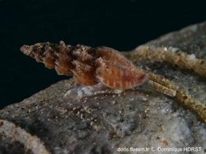 "Coq. lisse, luisante ; tours de spire costulés en travers, à côtes droites ; les tours de spires et les côtes sculptées de lignes longitudinales élevées ; sa couleur est d’un brun ferrugineux, et l’ouverture d’un ferrugineux pâle. Long. 0,008. Séj. Régions des algues. App. Toute l’année. Se trouve subfossile".