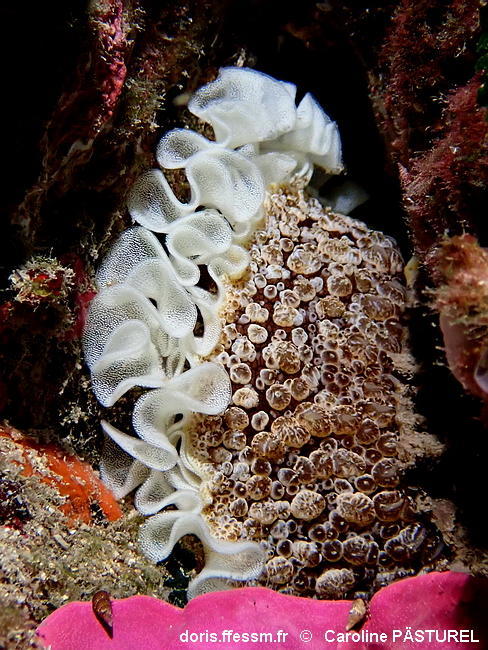 L'ombrelle dépose ici sa ponte le long d'une faille de coralligène.